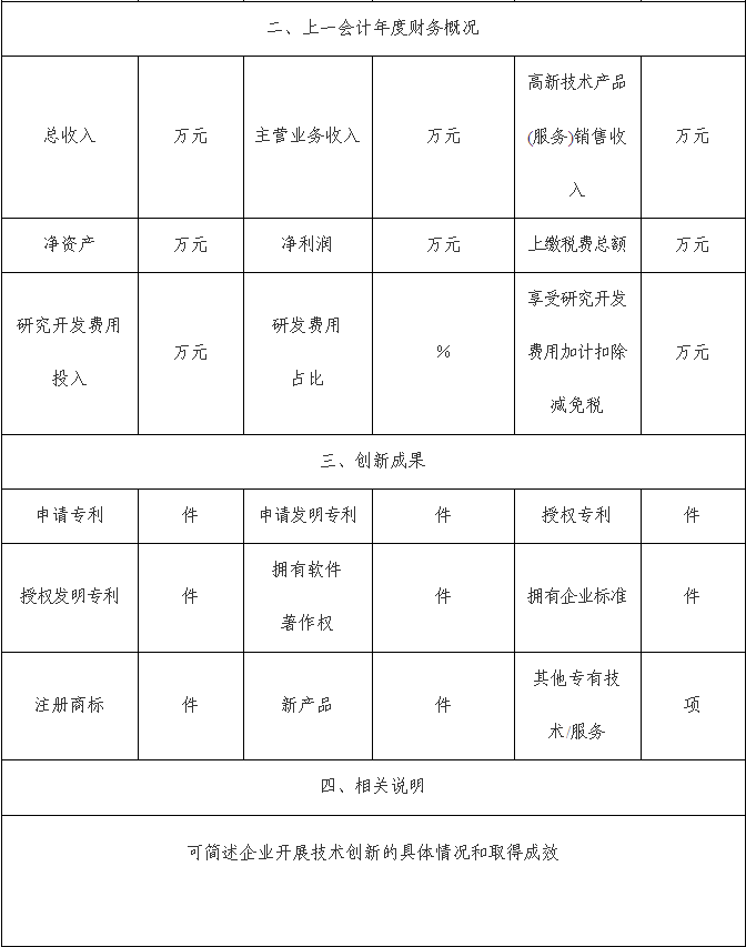 浙江省科技型中小企業(yè)認(rèn)定申請書