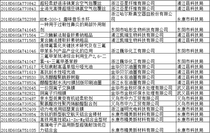 浙江省科學技術廳2018年新產品試制計劃項目(第一批)公示