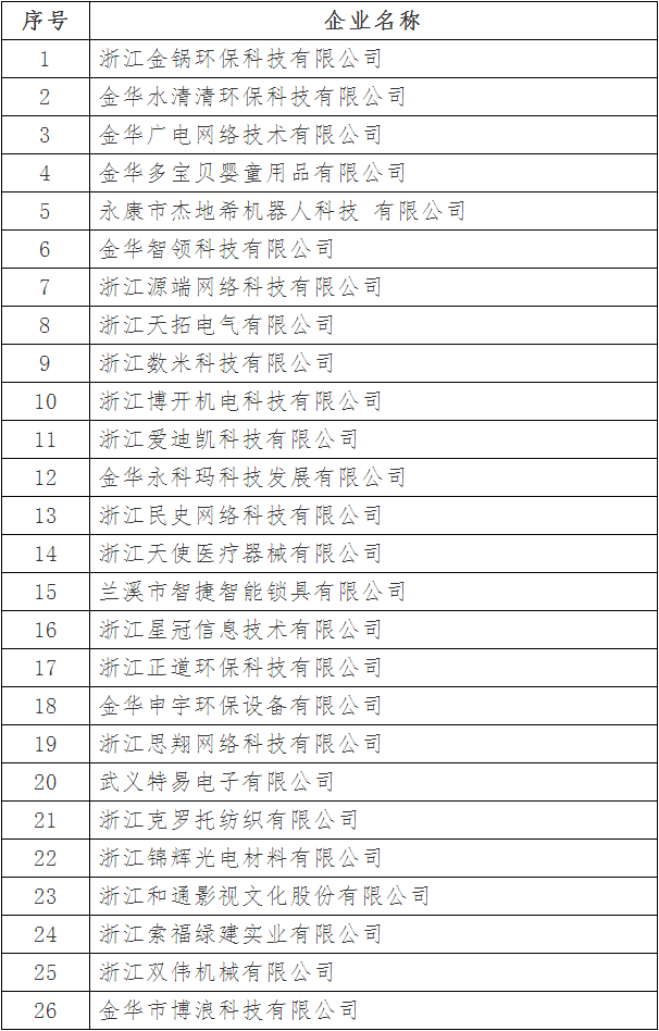 根據(jù)《浙江省人民政府關于下放部分省級行政審批和管理事項的通知》(浙政發(fā)〔2012〕73號)精神,按照《浙江省科學技術廳關于印發(fā)浙江省科技型中小企業(yè)認定管理辦法的通知》(浙科發(fā)高〔2016〕88號)的有關文件規(guī)定,在各縣(市、區(qū))科技主管部門審核推薦基礎上,經(jīng)市科技局核對,擬同意認定浙江金鍋環(huán)??萍加邢薰镜?21家企業(yè)為2018年金華市第一批浙江省科技型中小企業(yè),現(xiàn)予以公示,接受社會監(jiān)督。