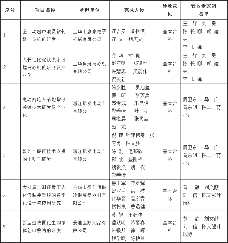 根據(jù)《金華市級科技計劃項目驗收管理辦法》(金市科字〔2015〕83號)規(guī)定,現(xiàn)將金華市鷹豪電子機械有限公司、金華神舟離心機有限公司、浙江綠源電動車有限公司、金華市德仁假肢矯形康復(fù)器材有限公司、金華市景迪醫(yī)療用品有限公司承擔的《全自動超聲波燙鉆刺繡一體機的研發(fā)》、《大長徑比泥漿脫水臥螺離心機的研制及產(chǎn)業(yè)化》、《電動兩輪車節(jié)能增效關(guān)鍵技術(shù)研發(fā)及產(chǎn)業(yè)化、智能車聯(lián)網(wǎng)技術(shù)支撐的電動車研發(fā)》、《大批量定制環(huán)境下人體假肢接受腔的數(shù)字化設(shè)計與應(yīng)用研究》、《新型速效固化生物液體創(chuàng)口敷貼的研發(fā)》5家企業(yè)6個市級科技計劃項目驗收結(jié)果予以公示,接受社會監(jiān)督,公示期從2018年7月16日至7月23日止。