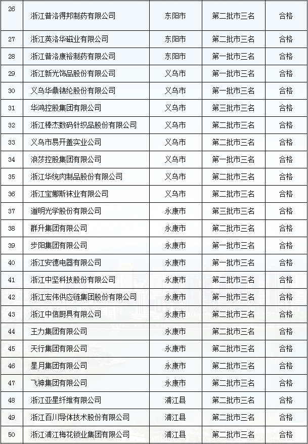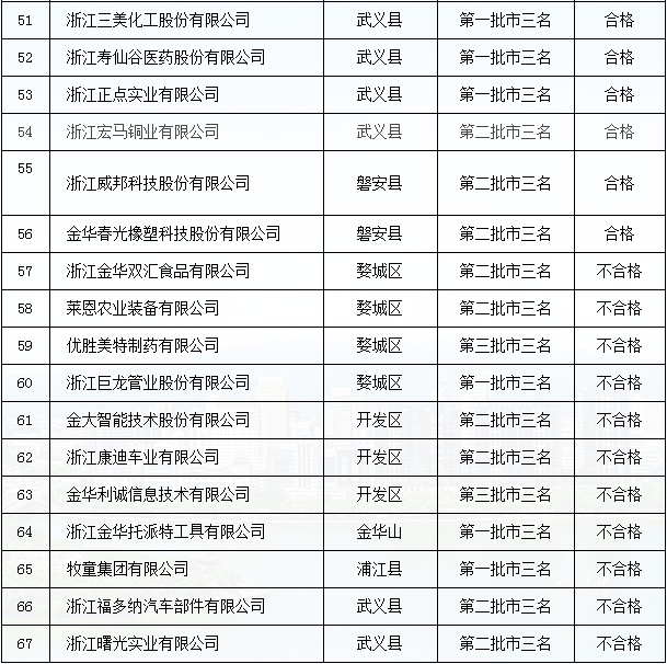 金華市”三名“培育試點(diǎn)企業(yè)復(fù)審結(jié)果