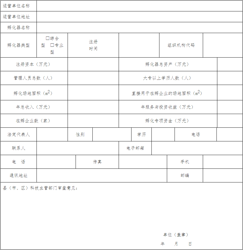 金華市級(jí)科技孵化器認(rèn)定申請(qǐng)表