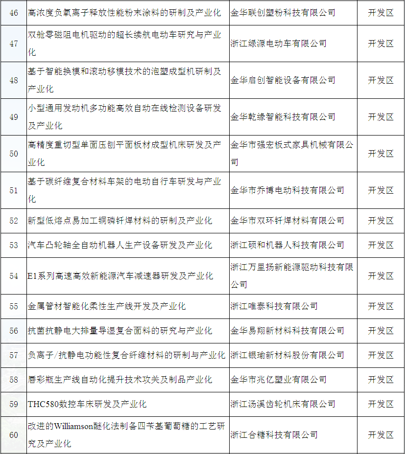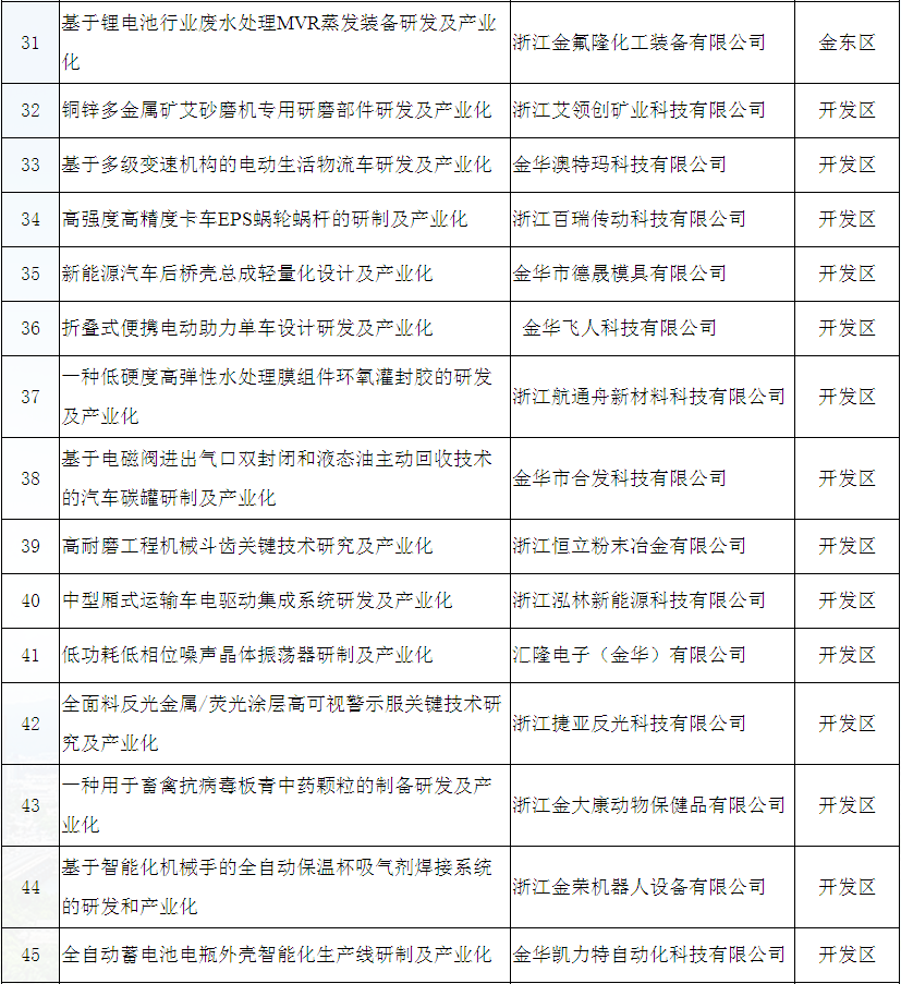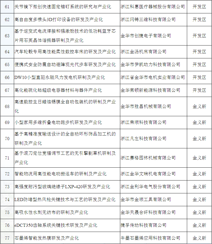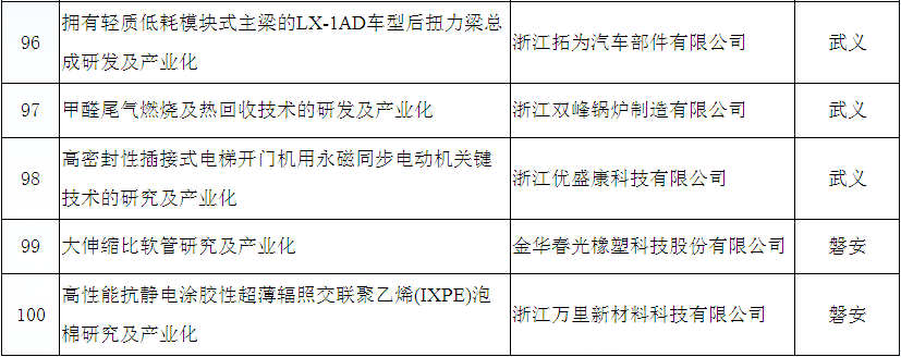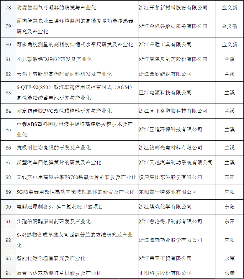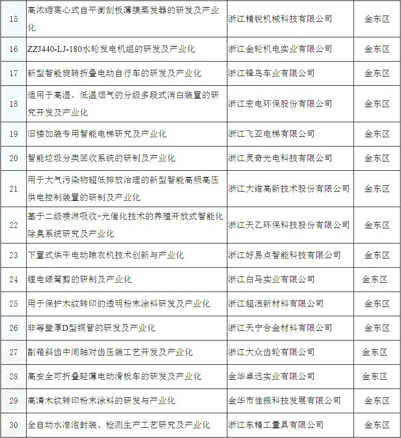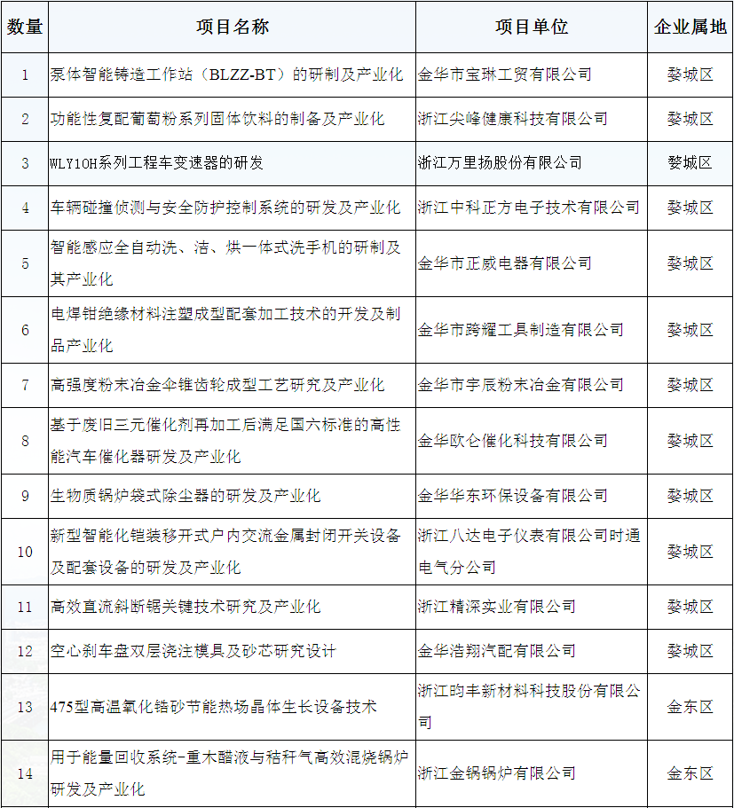 金華市2019年技術創(chuàng)新項目立項公示名單