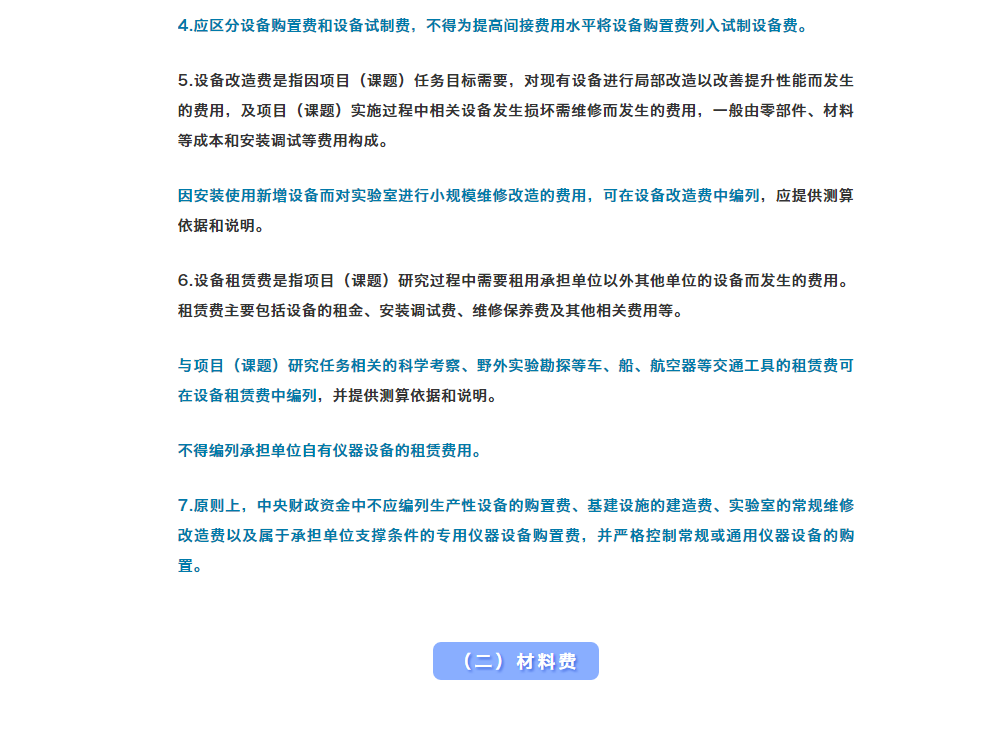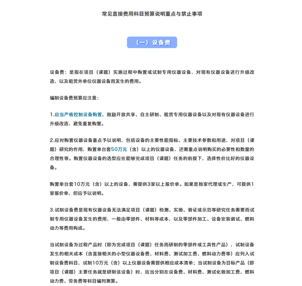 設(shè)備費(fèi):是指在項(xiàng)目(課題)實(shí)施過(guò)程中購(gòu)置或試制專(zhuān)用儀器設(shè)備,對(duì)現(xiàn)有儀器設(shè)備進(jìn)行升級(jí)改造,以及租賃外單位儀器設(shè)備而發(fā)生的費(fèi)用。