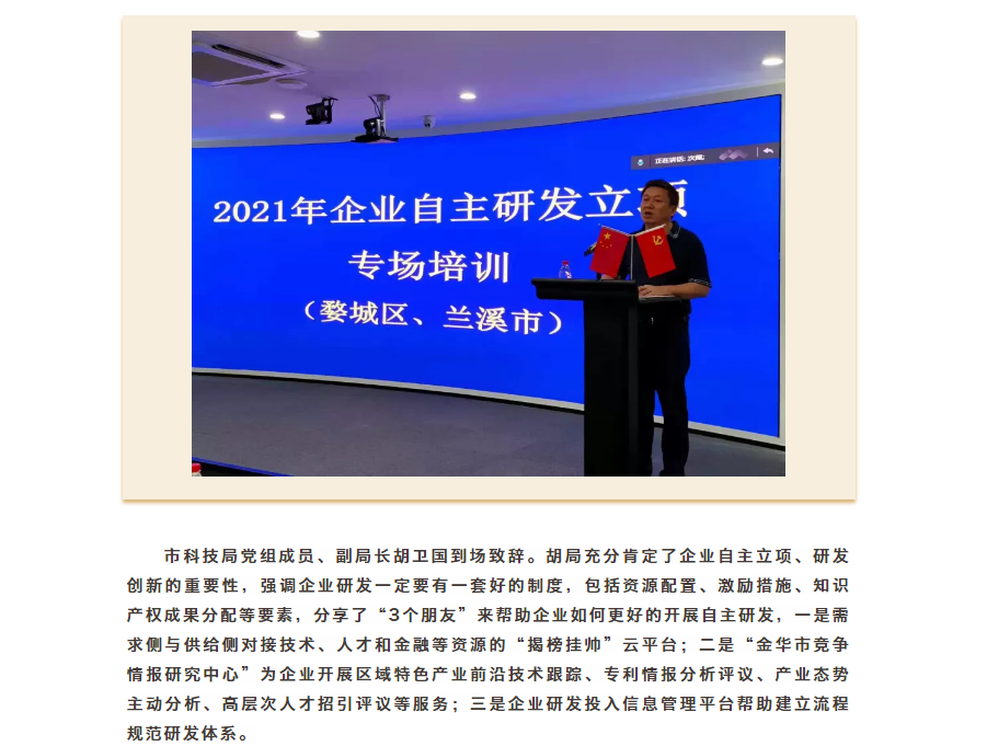 首頁 >新聞中心2021年企業(yè)自主研發(fā)立項(xiàng)專場培訓(xùn)(婺城區(qū)、蘭溪市專場)順利召開